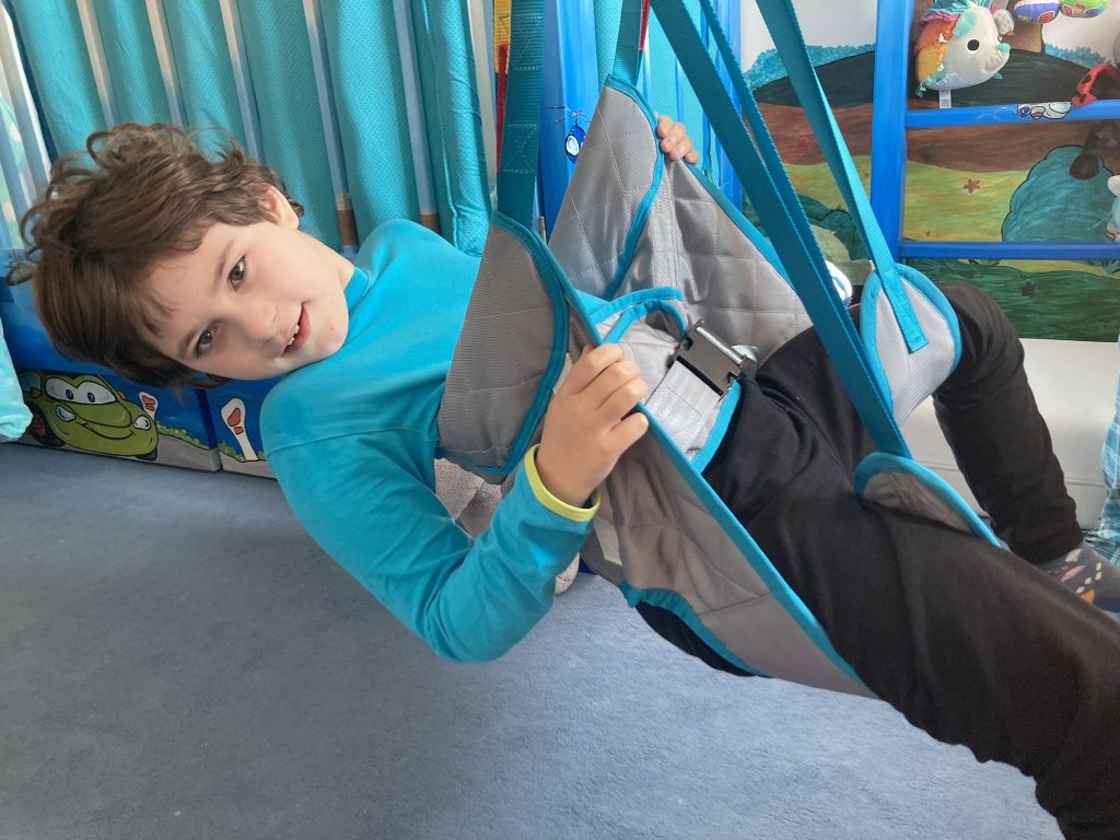 Vybrali sme si koľajnicový systém od firmy Velcon. Musím vyjadriť náš obdiv k profesionálnemu prístupu a kvalitne odvedenej práci. Koľajnice už máme na strope pár mesiacov a opticky nám neprekážajú, zvykli sme si na ne a už ich ani nevnímame. Maximko má špeciálne vaky na hygienu, toaletu a presun napr. do kočíka. Má aj vak na vertikalizáciu, aby si mohol užiť pocit, že „stojí“.